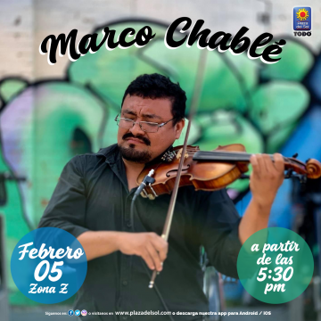 Te esperamos en Plaza del Sol, en la Zona Z, para disfrutar de una tarde musical con el talento de Marco Chablé, violinista.