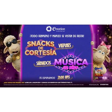 Disfruta de nuestros Snacks de cortesía todos los viernes 🍿🥨 y prepárate para vibrar con Música en vivo todos los sábados 🎶🔥 🕘 21:00 hrs 📍 Te esperamos para que vivas la mejor experiencia ¿Es tu primera vez? 👀 Acércate a recepción y descubre los beneficios que tenemos para ti 💜 #Eventos #EmotionPlazaDelSol#PlazaDelSol